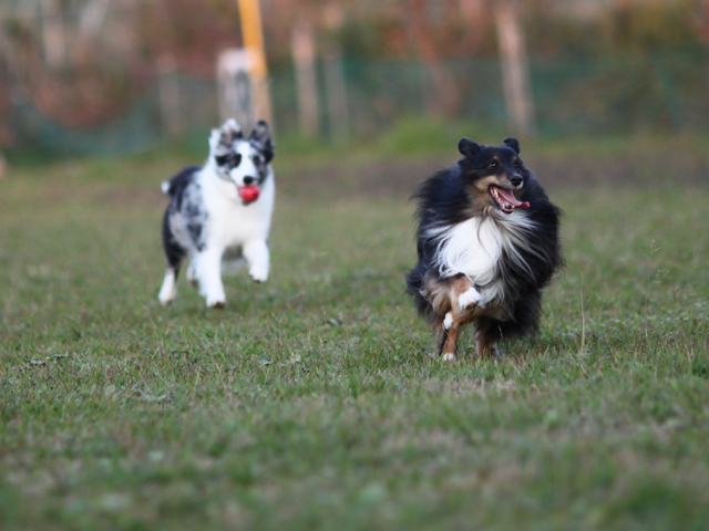 ボール投げをすると二人で取りに行くくせに、持ってくるのは桔梗の仕事だったりします。