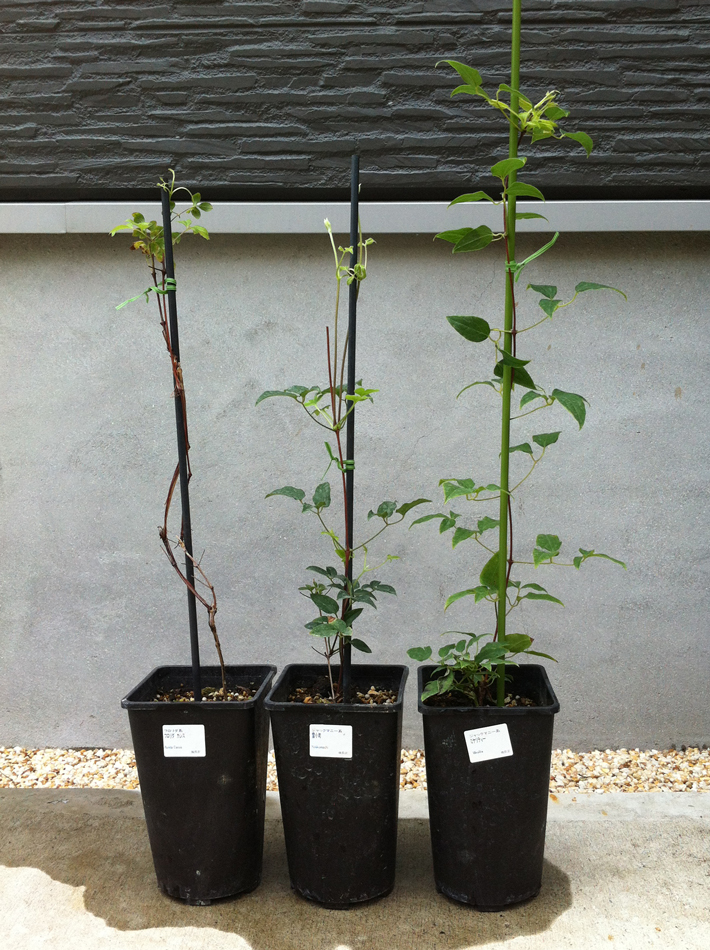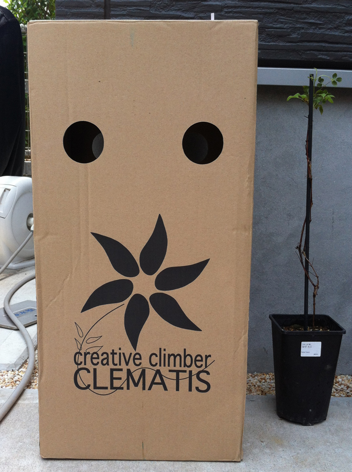 クレマチス購入 Posted on 2013/07/14 by 蜜 及川フラグリーンにて、クレマチス購入。 カシス、雪小町、ミケリティ 向かって左から ・フロリダ カシス ・ジャックマニー系 雪小町 ・ジャックマニー系 ミケリティ フロリダ系は旧枝咲きなので、枯れた枝から新芽が出てるわけだけども、これ水吸ってるの?と思うくらい本当に枯れている・・・なんか不思議。 可愛いダンボール